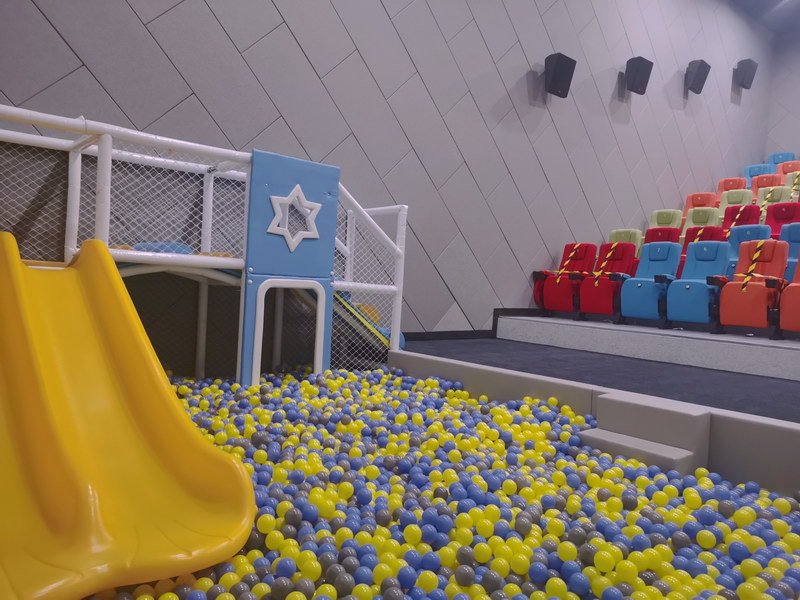 影城七個影廳可同時容納910名影迷觀影。從座椅、銀幕到音效系統(tǒng)、放映機都以為觀影者提供極具震撼的影音視聽效果為標準。以親子風格為主的放映廳,廳內(nèi)設計了海洋球區(qū)域,大人觀影的同時孩子們可以在“海洋”里徜徉。