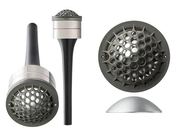 其次,為什么Giya系列音箱上方要做成一個(gè)像是冰淇淋尖端垂下的形狀呢?因?yàn)槟抢锩嬗蠽IVID audio的獨(dú)家技術(shù)—錐狀窄管負(fù)載(Tapered Tube Load-TTL),他們透過這項(xiàng)設(shè)計(jì),消除單元背波的干擾!负芏嗳酥惶幚硪粝鋯卧蚯暗陌l(fā)聲,卻忽略了背波。我們透過這個(gè)逐漸變窄的導(dǎo)管去吸收背波,就能避免背波反射干擾到單元的發(fā)聲。