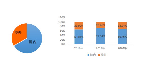 當(dāng)然,除國內(nèi)市場之外,鴻合科技也注重在海外市場的布局,旗下“newline”品牌專門面向海外的教育和國內(nèi)商用市場。鴻合科技認(rèn)為,海外的教育市場在政府長期計(jì)劃支持、學(xué)校需求穩(wěn)定增長的背景下具有良好的前景,市場可拓展范圍較大,公司的市場開拓情況進(jìn)展良好。北美、歐洲和亞洲多國政府重視學(xué)校的信息化建設(shè),先后啟動了相關(guān)項(xiàng)目并給予配套資金,用以支持學(xué)校對智能交互顯示產(chǎn)品的采購和應(yīng)用。公司將依托品牌優(yōu)勢、技術(shù)優(yōu)勢、產(chǎn)品質(zhì)量優(yōu)勢,逐步增強(qiáng)國際競爭力,進(jìn)一步擴(kuò)大海外的教育市場占有率和品牌影響力。2020年鴻合科技境內(nèi)、境外營收占比分別為66.76%、33.24%,海外市場規(guī)模較上一年度相比略有提升。