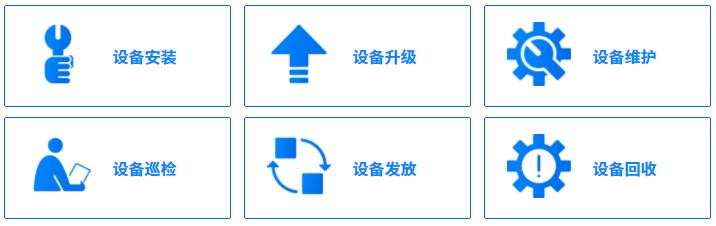 設(shè)備安裝、設(shè)備升級、設(shè)備維護(hù)、設(shè)備巡檢、設(shè)備發(fā)放、設(shè)備回收。