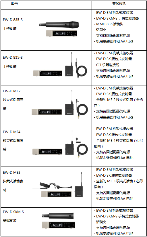 Evolution Wireless Digital現(xiàn)已發(fā)售,提供手持式、樂器、領(lǐng)夾式、頭戴式話筒、組合和基礎(chǔ)套裝(參見附錄)