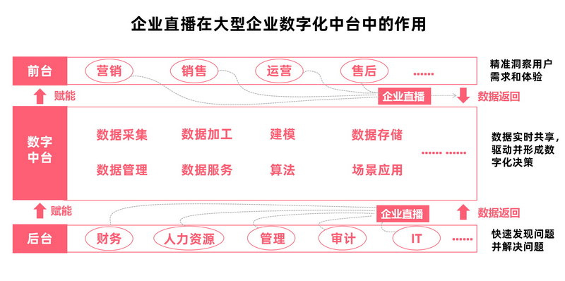 對(duì)于組織架構(gòu)龐大、員工數(shù)量多的大型企業(yè),企業(yè)更青睞搭建品牌自有直播平臺(tái),因此較靈活,可按需開(kāi)發(fā)功能(支持與企業(yè)數(shù)據(jù)中臺(tái)或業(yè)務(wù)系統(tǒng)打通)的PaaS服務(wù)更符合企業(yè)數(shù)字化戰(zhàn)略需求。