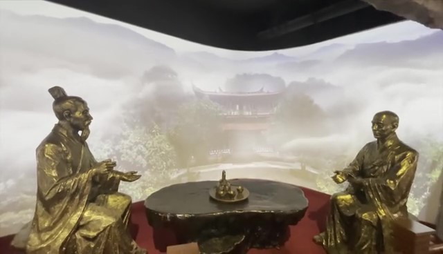 環(huán)幕+數(shù)字沙盤,環(huán)幕播放武夷山茶文化的歷史宣傳片,結(jié)合數(shù)字沙盤讓觀眾在沉浸在武夷山美麗的風(fēng)光里學(xué)習(xí)了解茶文化。