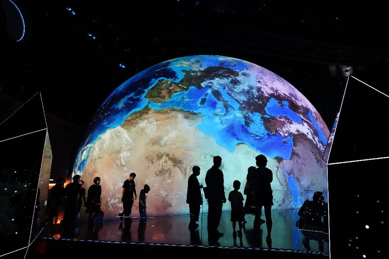 來到“家園”展區(qū), “地球變遷”展項(xiàng)格外引人矚目。這是由七臺(tái)科視Christie D20WU-HS 激光投影機(jī)在直徑 20 米的巨型旋轉(zhuǎn)球體上呈現(xiàn)出令人嘆為觀止的圖像。另外,“星際穿越”是一幅長達(dá)60米的巨型幕墻,10 臺(tái)科視Christie DWU1075-GS 激光投影機(jī)投射出引人入勝的互動(dòng)投影。D20WU-HS 和 DWU1075-GS 的亮度分別為 20,600 和 10,875 流明,都配備了科視Christie BoldColor 技術(shù),可精準(zhǔn)地平衡色彩并還原繽紛的圖像,同時(shí)不影響亮度。在其它展館中,三臺(tái)科視Christie 4K7-HS 激光投影機(jī)帶來了超精細(xì)的 4K 天體圖像,它們擁有 4K 超高清分辨率,以