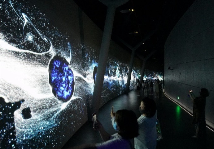 令人驚艷的設(shè)計(jì)也在天文館的內(nèi)部得以體現(xiàn),眾多亮眼的展區(qū)均配備先進(jìn)的視聽科技,為觀眾帶來了具有高度互動(dòng)性和沉浸感體驗(yàn)。這些展區(qū)配備了 40 多臺(tái)科視Christie HS 系列和 GS 系列 1DLP 激光投影機(jī),創(chuàng)造超凡投影,它們的亮度與圖像分辨率各有不同(從6,350 到 20,600 流明不等),并采用了科視Christie 潘多拉魔盒® V8 與科視Christie 窗口部件設(shè)計(jì)器 這套實(shí)時(shí)視頻播放及處理系統(tǒng)。