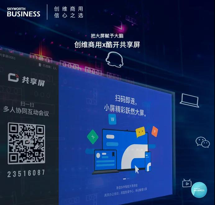 針對商用活動中的內容的共享,Swaiot PROTV™|MAX系列K98通過酷開共享屏幫助實現(xiàn)跨屏連接,快速互聯(lián)、便捷共享,為商務辦公帶來高效協(xié)同的一站式體驗。開放的共享平臺還能夠帶來無盡的資源,讓畫面不止在眼前,真正實現(xiàn)視界無界。