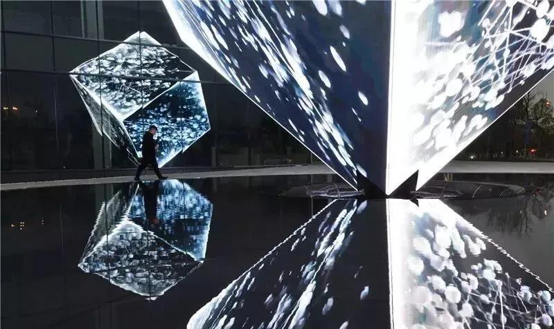 藝術(shù)家們對新媒體藝術(shù)的創(chuàng)新就像人類對宇宙的探索從沒停止過。裝置將天文與雕塑、建筑等藝術(shù)形式相結(jié)合,營造出一種變幻莫測的美妙畫面,給人強(qiáng)烈的視覺沖擊力,立方體的造型更可以360度無死角的圍觀欣賞拍照。