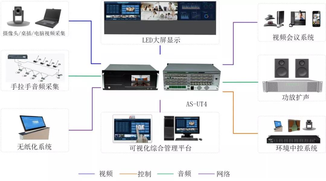 ❖ 中控、音頻、視頻一體化可視化應(yīng)用,部署方便、使用靈活、維護(hù)簡單。