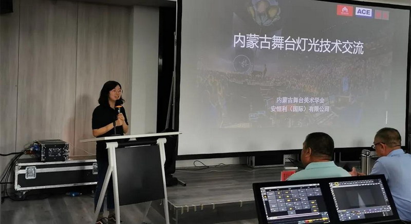 安恒利燈光部內(nèi)蒙古區(qū)域銷售經(jīng)理蘭詩溢代表安恒利公司表達對內(nèi)蒙古舞臺美術(shù)學(xué)會的支持與幫助表示感謝,對遠道而來參加培訓(xùn)的老師表達感謝。