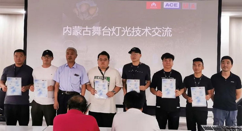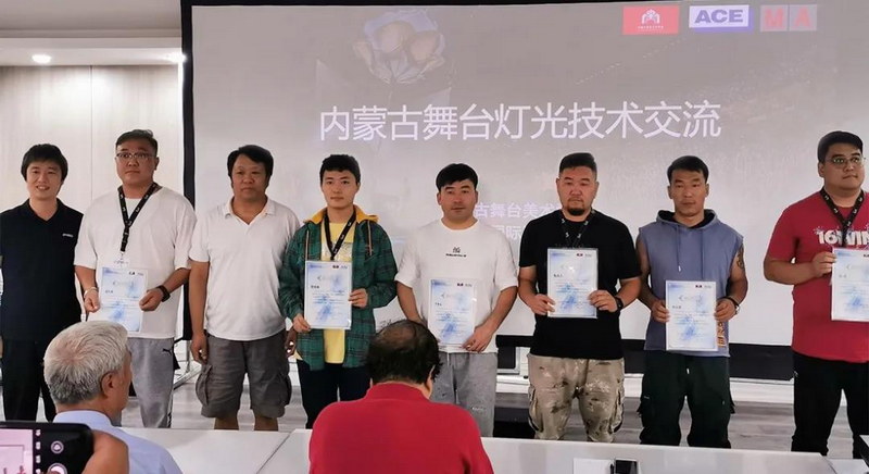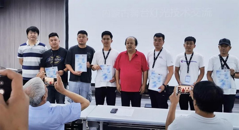 培訓(xùn)結(jié)束后,由內(nèi)蒙古舞臺美術(shù)學(xué)會會長浩特,內(nèi)蒙古舞臺美術(shù)學(xué)會名譽會長解力軍、白呼和,副會長阿哲、李太平、劉鵬,與安恒利燈光部內(nèi)蒙古區(qū)域銷售經(jīng)理蘭詩溢,產(chǎn)品推廣副經(jīng)理李怡燃,技術(shù)支持經(jīng)理李晨陽,技術(shù)支持副經(jīng)理張志朋,系統(tǒng)技術(shù)工程師于志強分別為所有學(xué)員頒發(fā)培訓(xùn)證書。