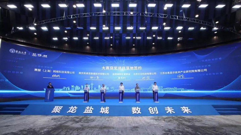 現(xiàn)場,鹽城市與東南大學簽訂《東南大學支持鹽城市人民政府建設(shè)西伏河(數(shù)字經(jīng)濟)實驗室合作備忘錄》;為數(shù)字經(jīng)濟優(yōu)秀項目頒獎,發(fā)現(xiàn)東大獨角獸數(shù)字經(jīng)濟大賽經(jīng)過5個多月的項目征集、初賽、復賽、決賽、孵化等過程,從300多家東大全球校友企業(yè)中層層選拔,最終8個具有高成長價值項目榮獲“潛力之星”稱號;舉行了東大數(shù)字經(jīng)濟項目簽約儀式,一批數(shù)字項目簽約落戶鹽南高新區(qū);東南大學胡漢輝教授介紹大賽情況、耿新教授作數(shù)字經(jīng)濟主題分享。區(qū)黨工委書記、管委會主任高尚德出席,區(qū)黨工委副書記、管委會副主任唐高明,區(qū)領(lǐng)導周志成參加。