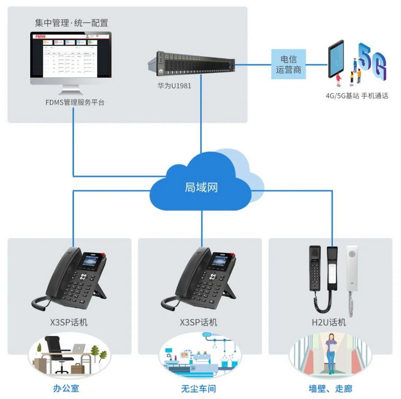 保障通信,互聯(lián)互通。在無(wú)塵車(chē)間無(wú)信號(hào)的情況下,通過(guò)方位企業(yè)辦公解決方案,實(shí)現(xiàn)X3SP辦公電話(huà)、H2U壁掛話(huà)機(jī)、WiFi手持話(huà)機(jī)等通訊設(shè)備間的互聯(lián)互通,解決車(chē)間員工與外部人員溝通難題,保持順暢溝通。