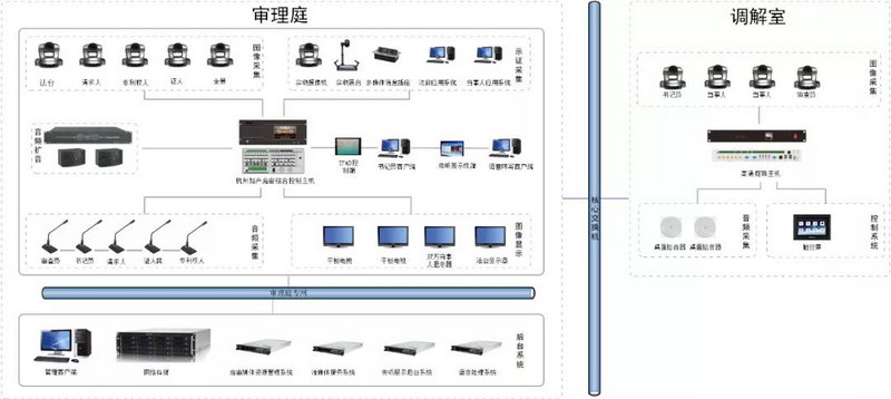 本項目共建設(shè)1個審理庭,1個調(diào)解室,其中包含庭審資源管理系統(tǒng),庭審軟件應(yīng)用系統(tǒng),庭審實時控制系統(tǒng),庭審語音實時轉(zhuǎn)寫系統(tǒng)等,可以實現(xiàn):