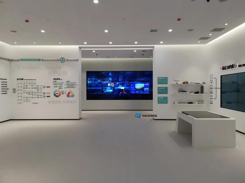 企業(yè)展廳墻面采用利華益產(chǎn)業(yè)的管道元素,用藝術(shù)展墻+實(shí)物模型+互動(dòng)識(shí)別桌裝置的形式,來(lái)展現(xiàn)利華益石化產(chǎn)業(yè)的三條長(zhǎng)產(chǎn)業(yè)鏈條,實(shí)現(xiàn)信息、技術(shù)、管理三者的融合。數(shù)據(jù)拼接屏既滿(mǎn)足智慧企業(yè)發(fā)展成就的展示,結(jié)合互動(dòng)操作臺(tái),展現(xiàn)了利華益集團(tuán)的科技實(shí)力。