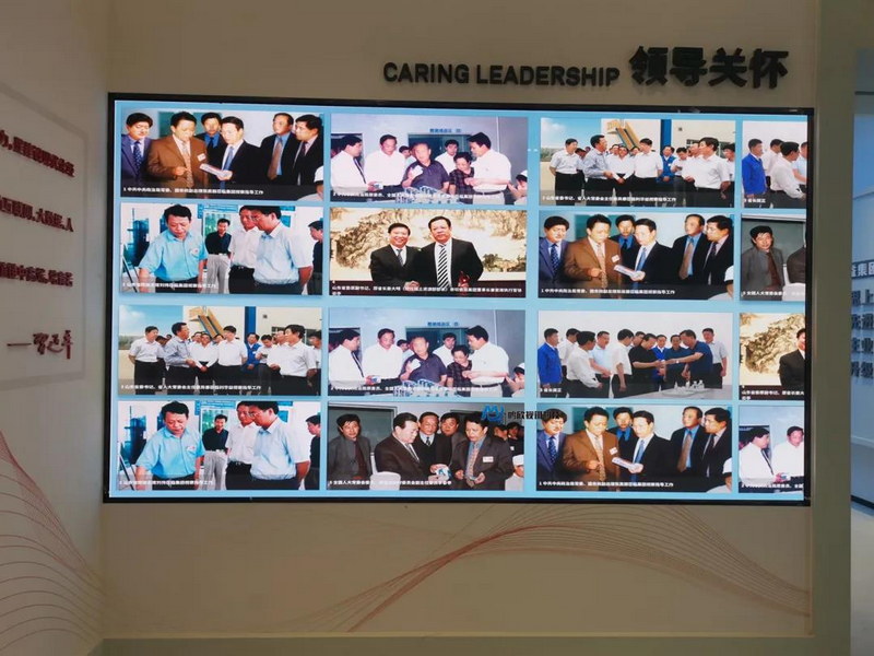 在環(huán)形藝術(shù)裝置內(nèi)放置透明圓球象征著組成企業(yè)不同產(chǎn)業(yè)的元素。企業(yè)發(fā)展歷程利用傾斜的墻面向中心聚合,敘述了利華益集團(tuán)的崛起之路。