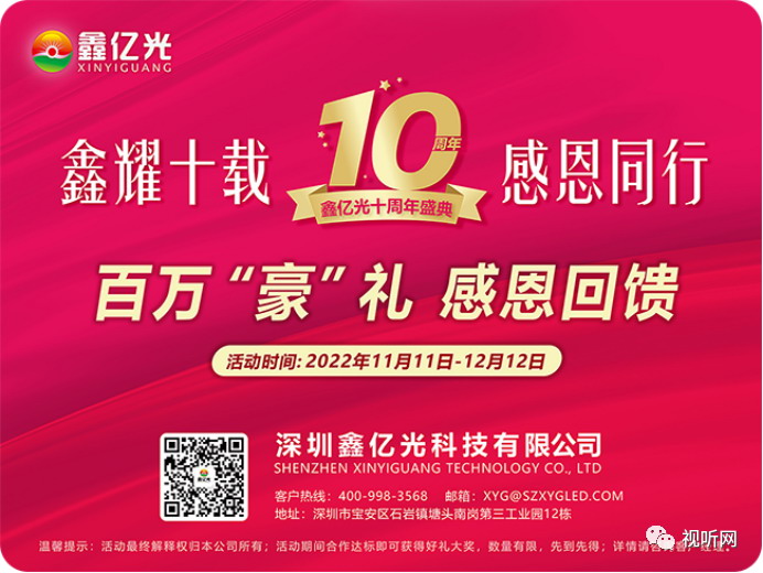 同時(shí),中國視聽網(wǎng)近日獲悉:鑫億光為慶祝十周年盛典,特此舉辦“百萬‘豪’禮,感恩回饋”盛大活動(dòng),感謝新老客戶多年以來的支持與認(rèn)可,請所有客戶伙伴們搶占先機(jī),趕緊咨詢吧。