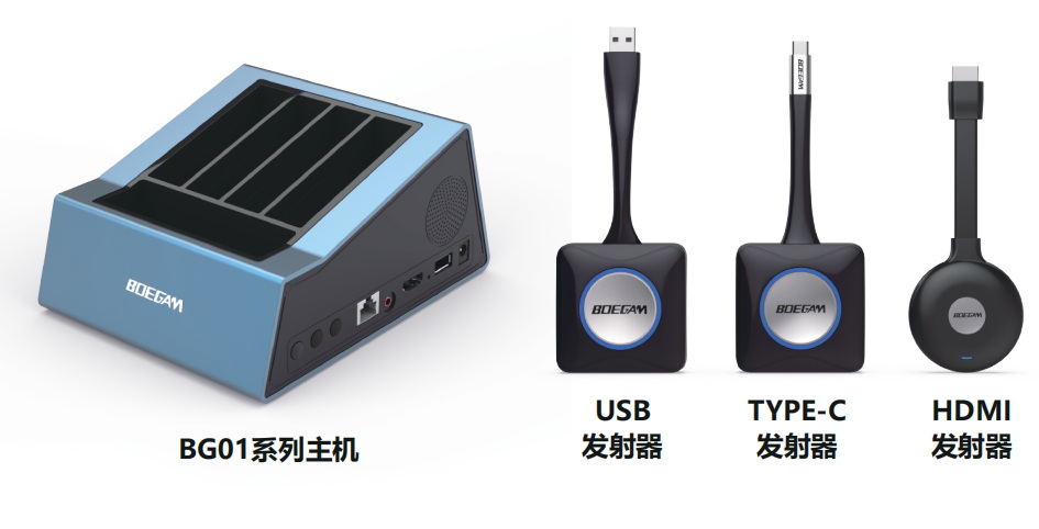 BG01桌面式無(wú)線投屏一體機(jī)可同時(shí)配置USB/HDMI/TYPE-C發(fā)射器,避免會(huì)議尷尬,有效提升會(huì)議效率,更顯干練。