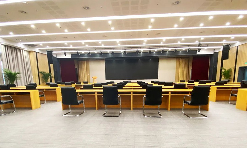 報(bào)告廳要采用了視頻會議系統(tǒng)、本地拾音、擴(kuò)聲系統(tǒng)、交互式控制系統(tǒng)和云屏顯示系統(tǒng)。簡單、易懂的操作界面可以使與會者自助操作和控制會議流程,通過云系統(tǒng)控制,可滿足全屏顯示,也可多畫面同時(shí)顯示。報(bào)告廳可用于大型學(xué)術(shù)報(bào)告,節(jié)日晚會和學(xué)術(shù)交流等。