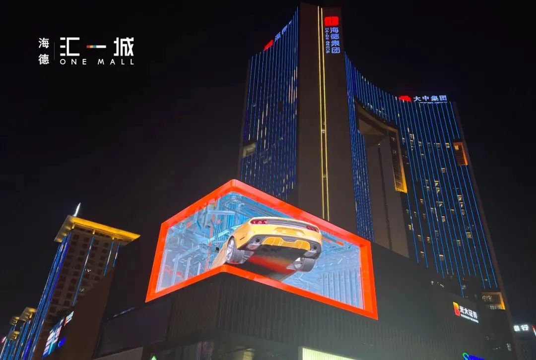 這塊裸眼 3D 大屏位于東莞鴻福路商圈中心位置,東莞大道與鴻福路交匯處海德廣場商業(yè)樓,市民可在對面國貿(mào)中心,市民廣場或者海德路口等最佳觀看位置欣賞。