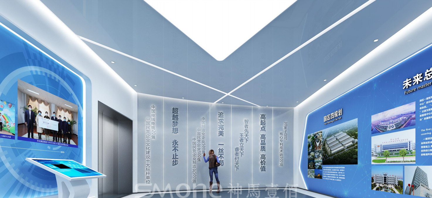 貫穿過去、現(xiàn)在和未來,營造具有強烈藝術(shù)感染力的展示環(huán)境,綜合運用現(xiàn)代智能化、數(shù)字互動及多媒體系統(tǒng)打造沉浸式互動型園區(qū)展廳,成為向廣大參觀者展示中興智慧物流園的實力成就和遠景規(guī)劃的重要載體和招商窗口。
