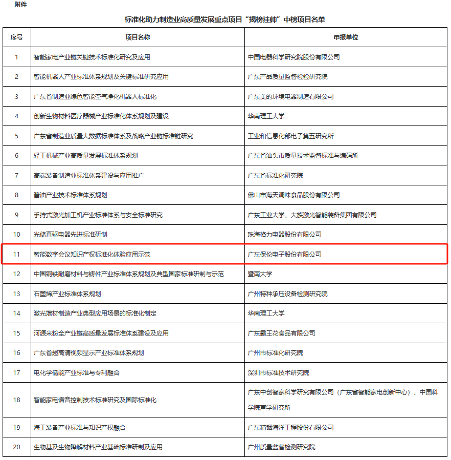 喜報(bào)!全區(qū)唯一!itc保倫股份入圍廣東省標(biāo)準(zhǔn)化助力制造業(yè)高質(zhì)量發(fā)展重點(diǎn)項(xiàng)目 “揭榜掛帥”榜單
