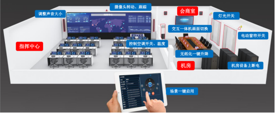 在指揮大廳配備1套可視化坐席調(diào)度管理平臺,將廳內(nèi)聲光電視訊等設(shè)備進(jìn)行鏈接,搭配科大訊飛語音識別引擎實現(xiàn)語音控制空調(diào)溫度、音響音量、窗簾開閉、燈光開關(guān)、攝像頭動作、中控場景切換等功能,讓指揮中心更加快速進(jìn)入備戰(zhàn)/作戰(zhàn)狀態(tài)。對接外部監(jiān)控、門禁、移動單兵等系統(tǒng)平臺,實現(xiàn)內(nèi)外部互聯(lián)互通,進(jìn)行集中調(diào)度、聯(lián)合指揮、統(tǒng)一管控,從而幫助用戶應(yīng)對各種場景需求,快速進(jìn)行智能化場景應(yīng)用調(diào)度,通過可視化交互界面,讓使用者一鍵式即可完成場景布局和切換。