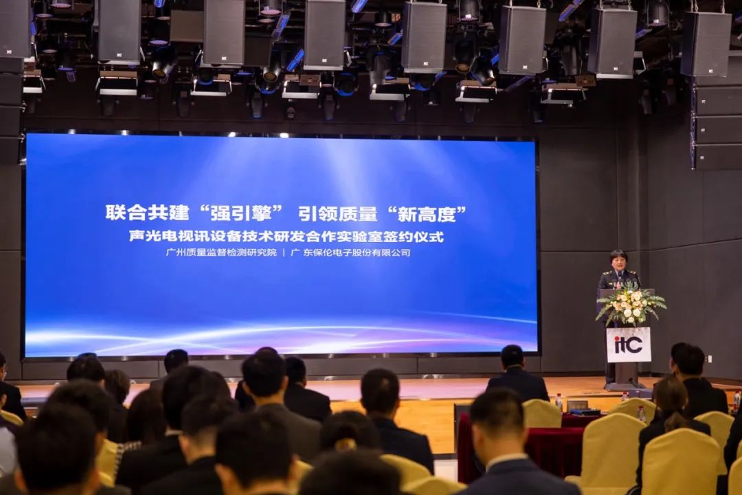 2023年3月1日上午,聯(lián)合共建“強(qiáng)引擎” 引領(lǐng)質(zhì)量“新高度”——廣東保倫電子股份有限公司與廣州質(zhì)量監(jiān)督檢測研究院“聲光電視訊設(shè)備技術(shù)研發(fā)合作實(shí)驗(yàn)室”簽約儀式在itc舉行。聲光電視訊設(shè)備技術(shù)研發(fā)合作實(shí)驗(yàn)室的成功簽約,將充分發(fā)揮各自資源優(yōu)勢,深度開展交流合作,打通從實(shí)驗(yàn)室到產(chǎn)業(yè)化的“最后一公里”,引領(lǐng)行業(yè)高質(zhì)量發(fā)展。