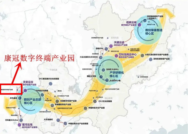 據(jù)了解,5年前龍崗區(qū)以龍崗數(shù)字創(chuàng)意產(chǎn)業(yè)走廊為載體,規(guī)劃建設(shè)數(shù)字創(chuàng)意產(chǎn)業(yè)集聚區(qū)。2020年12月,龍崗數(shù)字創(chuàng)意產(chǎn)業(yè)走廊獲得“國家級文化產(chǎn)業(yè)示范園區(qū)”創(chuàng)建資格。如今,一條橫跨龍崗9個(gè)街道、綿延46公里、總面積32平方公里的數(shù)字創(chuàng)意產(chǎn)業(yè)帶已經(jīng)形成,走廊以“一廊三核多支點(diǎn)”進(jìn)行布局,打造了一批多功能、多業(yè)態(tài)、多層級數(shù)字創(chuàng)意產(chǎn)業(yè)空間載體,實(shí)現(xiàn)了龍崗全區(qū)八成以上的文化產(chǎn)業(yè)營收,為區(qū)域高質(zhì)量發(fā)展增添了強(qiáng)勁動(dòng)力。