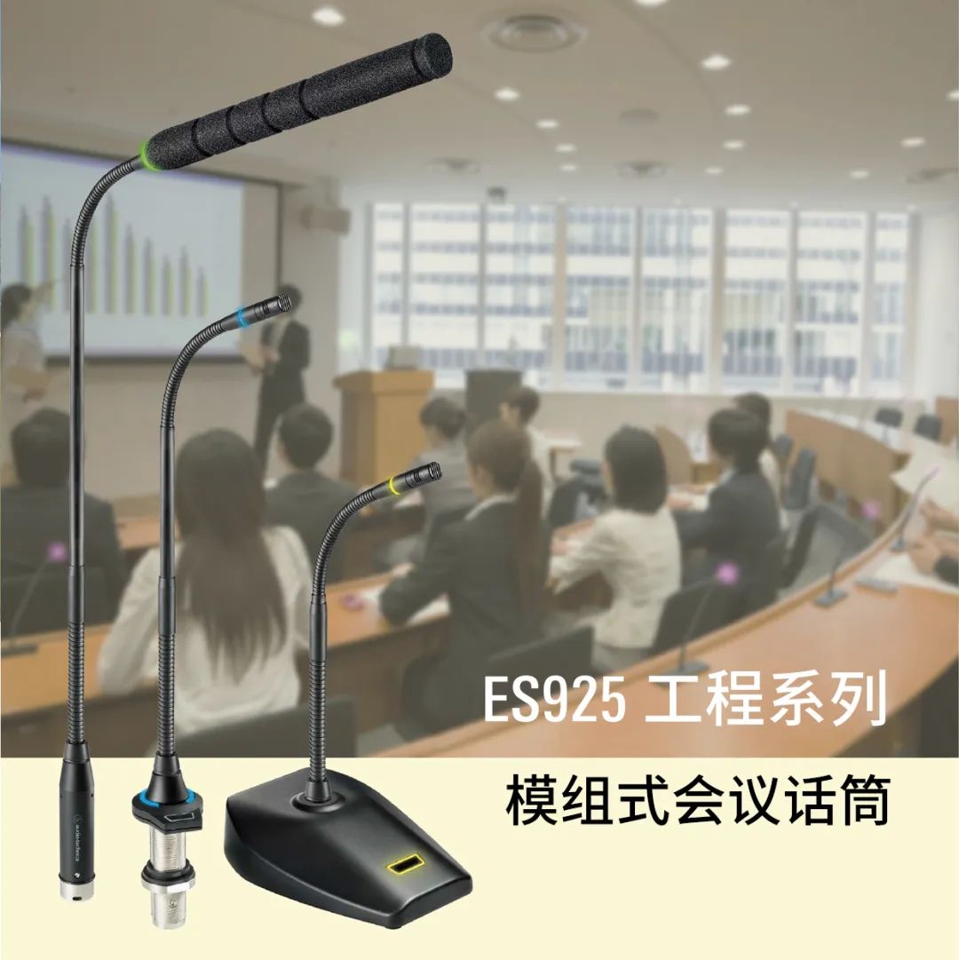 模數(shù)化的ES925系列包含了3種不同收音指向性的話筒元件、6種不同長度的鵝頸管,以及4種供電模組,所有這些組合都可按用戶的需求互換組合。其雙鵝頸式設(shè)計,更能準(zhǔn)確對準(zhǔn)收音目標(biāo)。