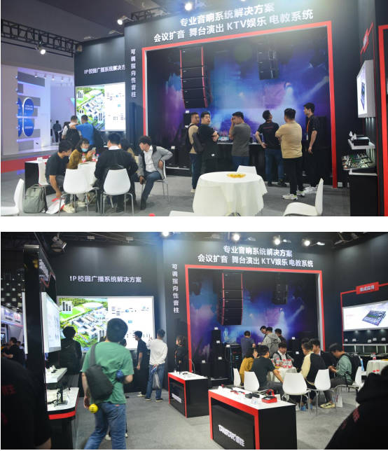 展館現(xiàn)場的參展人員熙熙攘攘的走動在各個展區(qū),得勝展柜旁邊站滿了觀看的人員,現(xiàn)場的每個人忙得不亦樂乎。此次展會,得勝攜旗下“TAKSTAR得勝”音響系統(tǒng)、會議系統(tǒng)、IP廣播系統(tǒng)及多套一站式音頻應用解決方案亮相此次展會。此外,得勝還展出了麥克風、耳機、擴音器等電聲產(chǎn)品,滿足各領域應用需求。