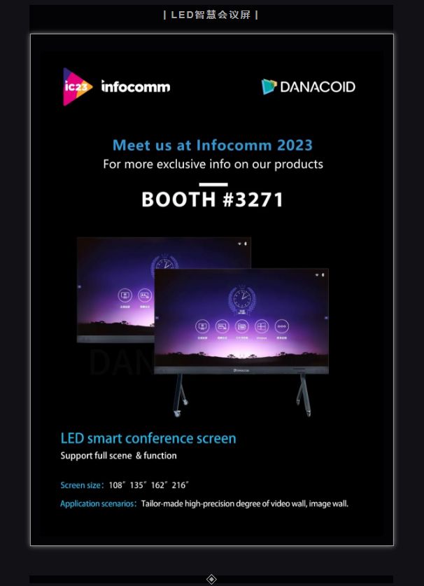 關(guān)于 大因數(shù)科集團(tuán) DANACOID秉承至繁歸于至簡的AV生態(tài)理念,自主研發(fā)LED智慧會議系統(tǒng),將分布式全網(wǎng)絡(luò)化AV系統(tǒng)解決方案與LED小間距顯示屏完美結(jié)合,輔以定制化配件,應(yīng)用于會議、商顯、娛樂、固裝項(xiàng)目中。此產(chǎn)品打破了傳統(tǒng)LCD顯示屏無法實(shí)現(xiàn)超大尺寸、高亮底灰、使用壽命有限的壁壘,并且兼具LCD顯示屏在會議室中全部功能。更融合全網(wǎng)絡(luò)化音視頻信號處理與其中,一臺設(shè)備即可實(shí)現(xiàn)全場景、全功能、開啟會議解決方案新時(shí)代