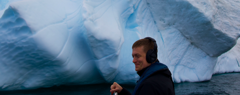 提到冰川的崩解,人們不會(huì)立即與聲音體驗(yàn)聯(lián)系起來(lái)。然而,這些正是著名錄音師托馬斯·雷克斯·貝弗利(Thomas Rex Beverly)珍視的令人嘆為觀止的自然現(xiàn)象,并期望后來(lái)的人們可以繼續(xù)體驗(yàn)這種聲音。2022 年,他在第四次成功探險(xiǎn)格陵蘭北極中,終于捕捉到了這個(gè)獨(dú)特生態(tài)系統(tǒng)的神奇聲音。六年多來(lái)一直陪伴在他左右的是什么?——森海塞爾麥克風(fēng)。