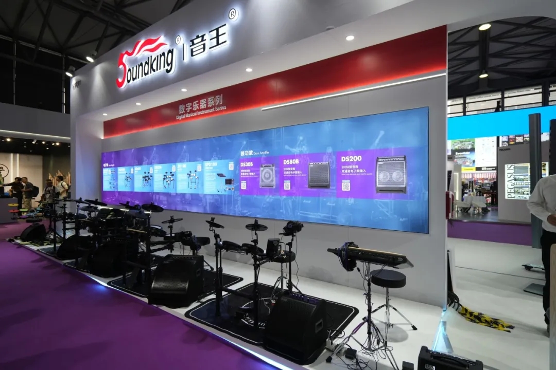 該展區(qū)呈獻(xiàn)多款富有創(chuàng)意的電子鼓產(chǎn)品,亮點(diǎn)之一是音王推出的全球首款折疊式多功能旅行電子鼓,在此次展覽中驚艷亮相,吸引了眾多音樂愛好者、專業(yè)樂手以及行業(yè)專家的目光。