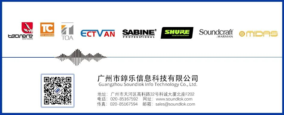 錞樂科技是西班牙TECNARE、美國TC-AUDIO、美國SABINE、日本TOA、英國Soundcraft聲藝、美國SHURE舒爾、中國ECTVAN艾維等進(jìn)口品牌中港澳地區(qū)總代理及授權(quán)代理、集銷售和技術(shù)服務(wù)設(shè)計為一體的綜合性企業(yè)。提供專業(yè)音響銷售、現(xiàn)場安裝施工、系統(tǒng)設(shè)備調(diào)試、操作培訓(xùn)及售后維修保障等全方位服務(wù)。更多產(chǎn)品信息請登錄 www.soundlok.com