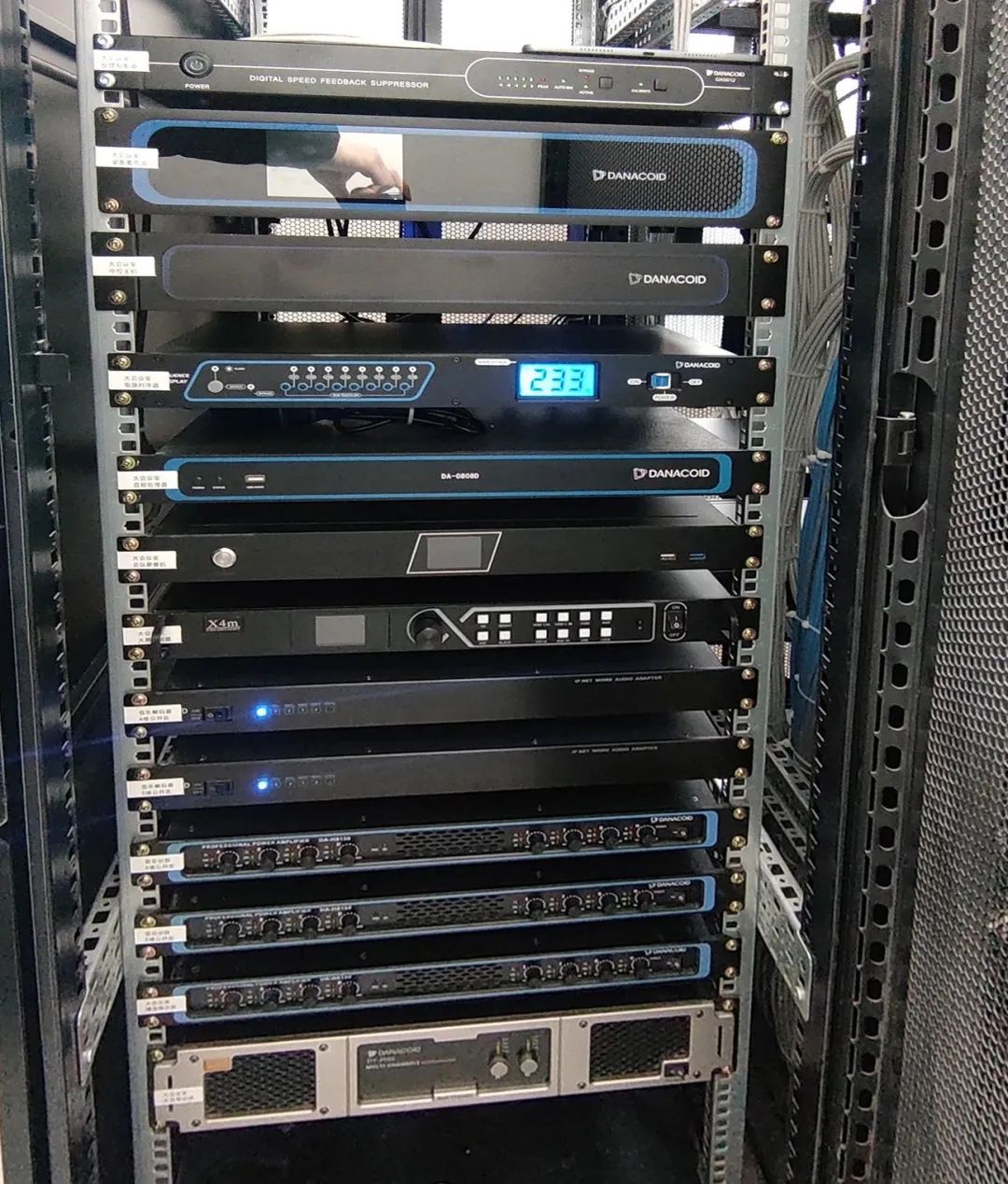 該項目引入了DANACOID先進的設(shè)備和技術(shù),包括數(shù)字音頻處理器、IP物聯(lián)網(wǎng)廣播系統(tǒng)、功放、超高清會議錄播主機、超高清會議攝像機、可視化控制軟件、鵝頸觸控話筒、智能型觸控會議主機、音箱等。這些設(shè)備和技術(shù)共同構(gòu)成了鼎源濱湖金融港會議室的核心架構(gòu),為會議的高效進行提供了有力保障。