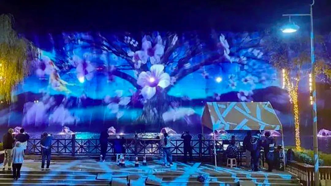 《鳳舞銀川》水幕投影音樂噴泉采用了5臺科視 D20WU-HS 激光投影機(jī)在水幕上呈現(xiàn)畫面。15 米高的水柱、高科技投影技術(shù)、舞臺燈光和音樂,將典農(nóng)河變成了一幅動人的天然畫布。富有韻律的水柱舞蹈、豐富多變的投影畫面和令人震撼的音樂形成共振,令觀眾置身于五彩夢幻的鳳凰之城。