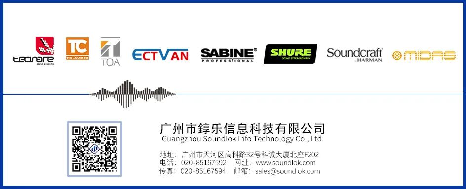 錞樂科技是西班牙TECNARE、美國TC-AUDIO、美國SABINE、日本TOA、英國Soundcraft聲藝、美國SHURE舒爾、中國ECTVAN艾維等進口品牌中港澳地區(qū)總代理及授權(quán)代理、集銷售和技術服務設計為一體的綜合性企業(yè)。提供專業(yè)音響銷售、現(xiàn)場安裝施工、系統(tǒng)設備調(diào)試、操作培訓及售后維修保障等全方位服務。更多產(chǎn)品信息請登錄 www.soundlok.com