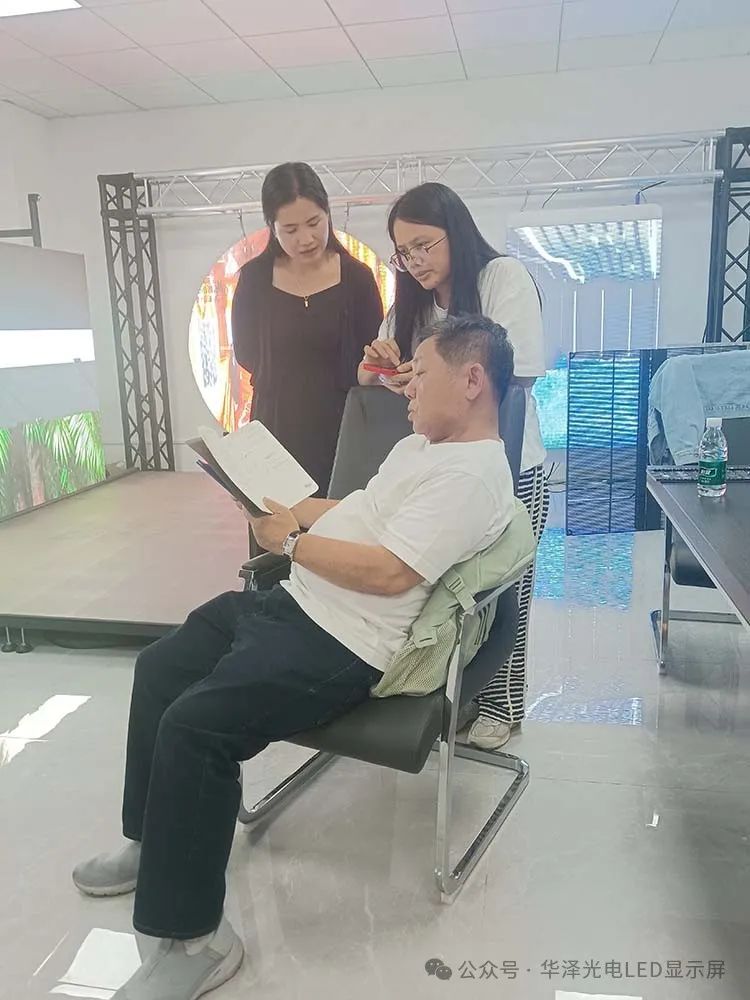 近日,泰國珠寶大亨蒞臨參觀華澤光電LED透明冰屏工廠,看不出這是將近70歲的大老板。