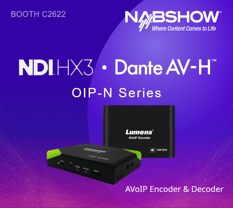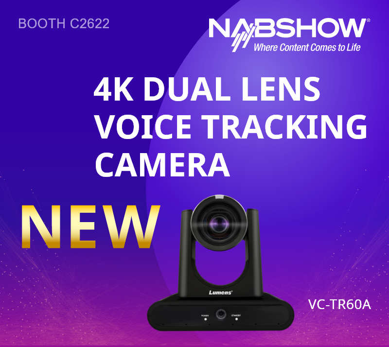 本次NAB展,Lumens將攜眾多新品亮相。全新的語音跟蹤PTZ攝像機VC-TR60A、新款智慧錄播一體機LC300、 支持Dante AV-H的OIP編解碼器。