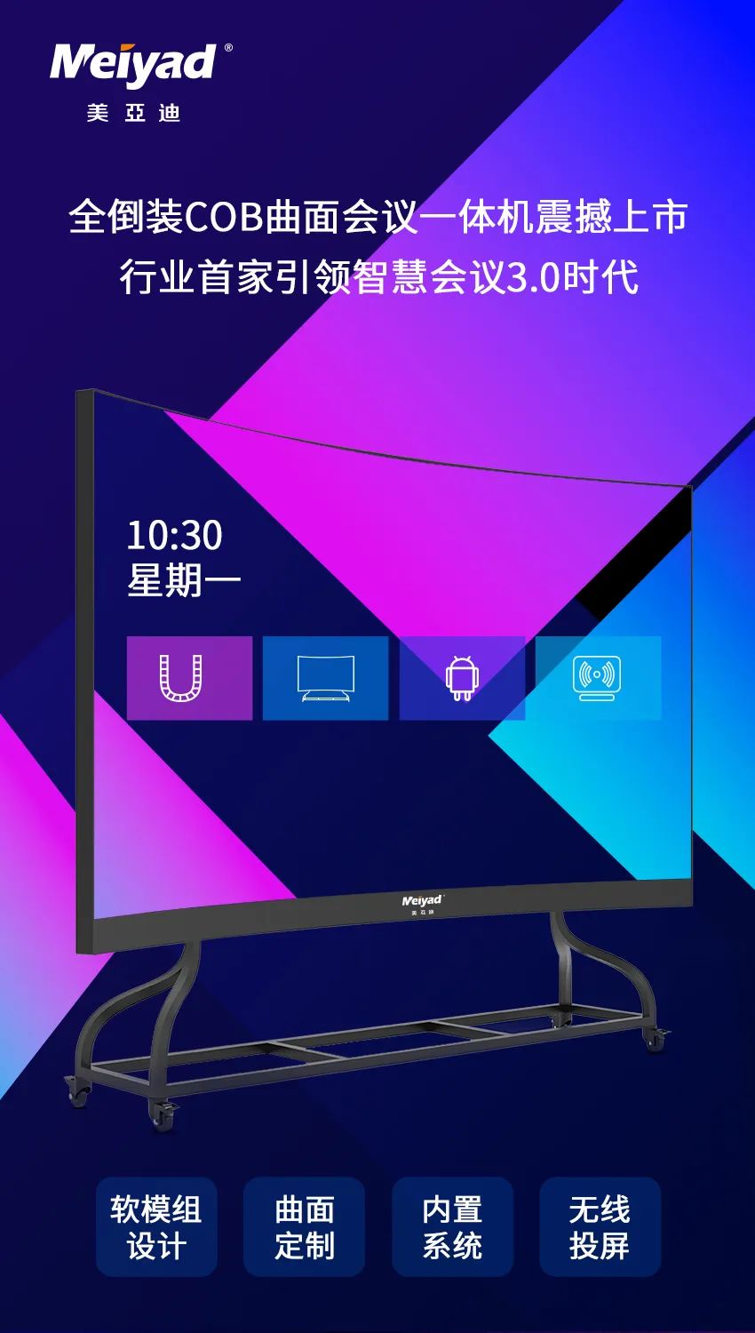 美亞迪全倒裝COB曲面會議一體機(jī)震撼上市,行業(yè)首家引領(lǐng)智慧會議3.0時代