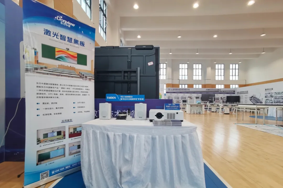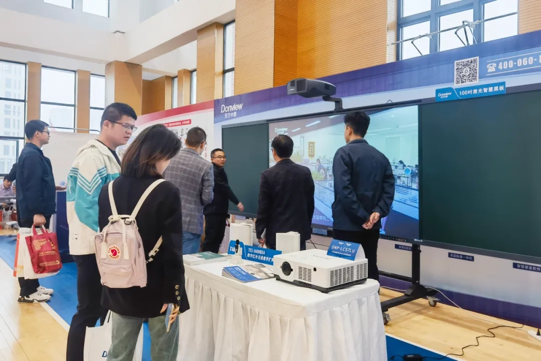 東方中原攜100吋激光智慧黑板、數(shù)字紅外無線教學(xué)擴(kuò)聲系統(tǒng)、教育投影機(jī)等教育裝備產(chǎn)品亮相活動現(xiàn)場,吸引了眾多與會者的目光。