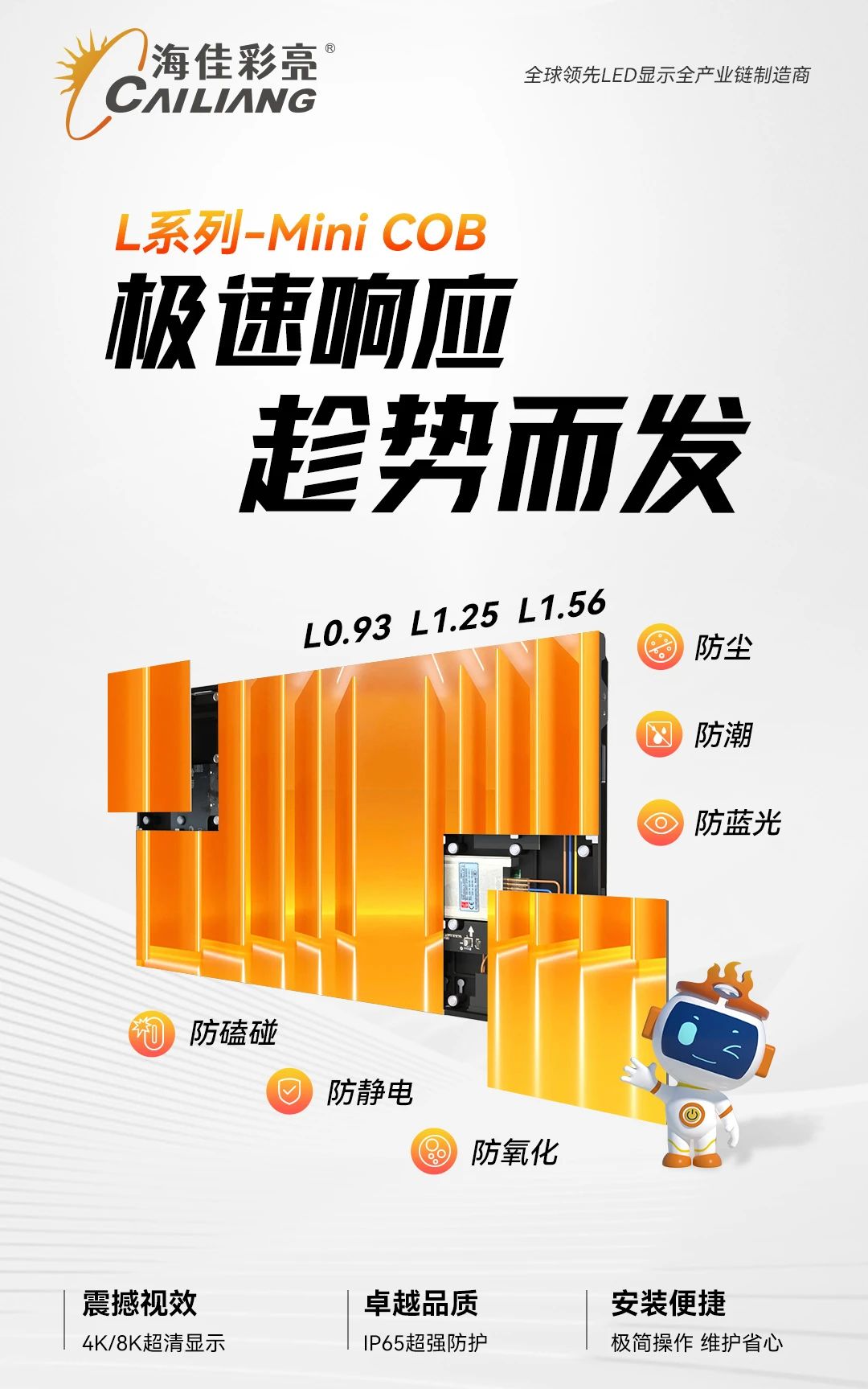 海佳彩亮L系列-MiniCOB產(chǎn)品采用納米覆膜工藝,可在COB模塊表面涂覆一層高分子納米薄膜,使其具備防水防撞功能,特殊材質的覆膜也可大大提升COB模塊墨色的一致性,從而提升產(chǎn)品對比度。同時具有耐用、高穩(wěn)定性、高防護、無限拼接等技術優(yōu)勢,再契合8K超高清顯示的發(fā)展趨勢,將顯著提升室內(nèi)顯示如監(jiān)控室, 會議室, 教育空間的視覺體驗。