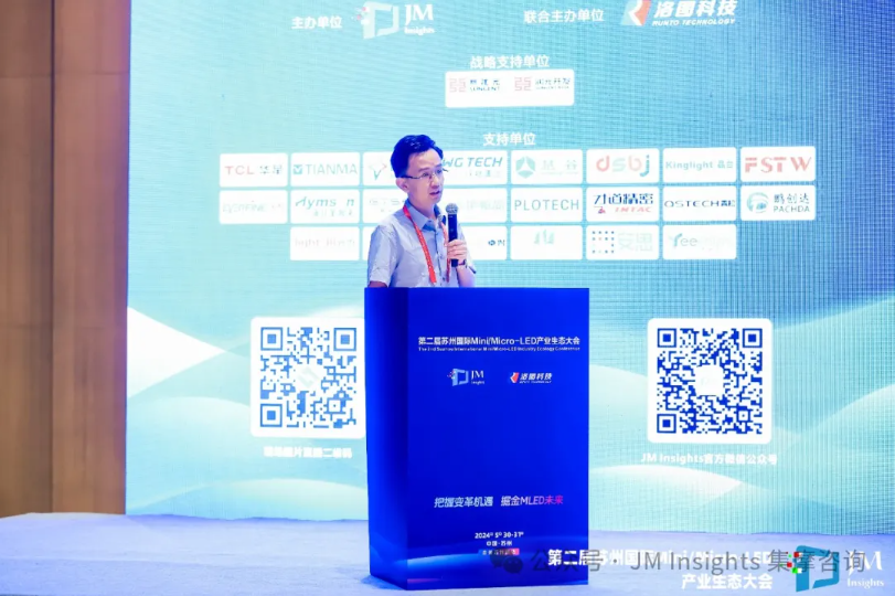 5月30日-31日,由JM Insights、洛圖科技(RUNTO)聯(lián)合主辦的2024第二屆蘇州國(guó)際Mini/Micro LED產(chǎn)業(yè)生態(tài)大會(huì)在蘇州合景萬(wàn)怡酒店隆重舉行。大會(huì)以“把握變革機(jī)遇 掘金MLED未來(lái)”為主題,聚集了大量Mini/Micro LED產(chǎn)業(yè)鏈龍頭企業(yè)和創(chuàng)新企業(yè),這些企業(yè)通過(guò)互動(dòng)交流碰撞出更多創(chuàng)新的火花,營(yíng)造行業(yè)協(xié)同創(chuàng)新的氛圍,促進(jìn)Mini/Micro LED應(yīng)用全面開花,本次大會(huì)匯聚產(chǎn)業(yè)鏈上下游近400+位專業(yè)人士參會(huì)。