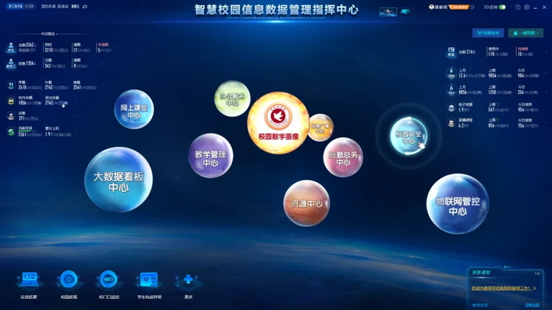 教務(wù)管理工作是智慧校園的核心業(yè)務(wù),教務(wù)管理中心為用戶提供學(xué)生學(xué)業(yè)成績、學(xué)科建設(shè)、師資力量、學(xué)生活動(dòng)、學(xué)校榮譽(yù)等一體化的教務(wù)管理信息,管理者可直觀、快速地掌握全校概況。