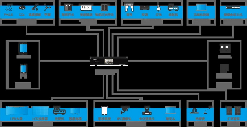 CHARTU長圖打造的智慧政務(wù)數(shù)字會議解決方案以圖靈多媒體智能IOT主機(jī)為主體,聯(lián)合多款數(shù)字會議產(chǎn)品,會議室整套系統(tǒng)高度集成,一臺控制設(shè)備即可對本地會議室內(nèi)音視頻信號及環(huán)境全方位管控。
