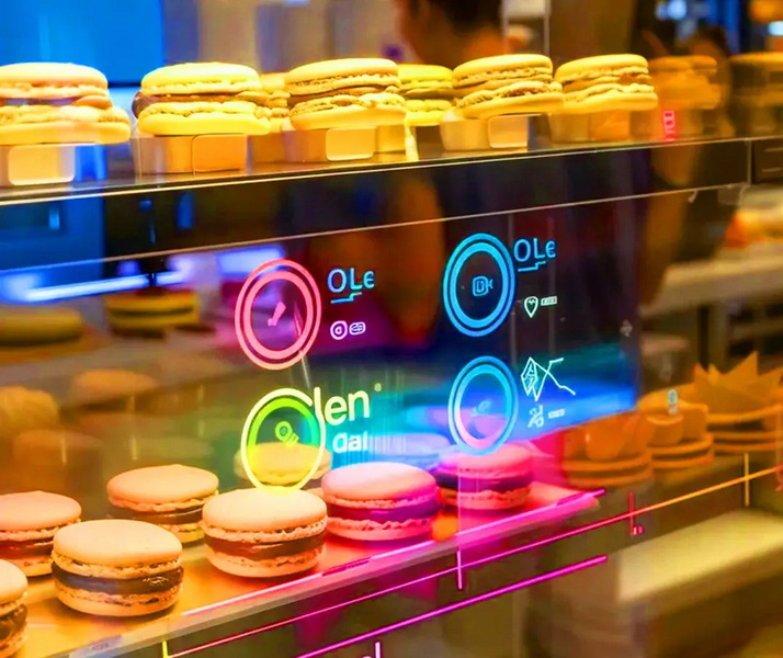 在日趨激烈的市場條件下,門店環(huán)境已成為軟性服務(wù)及消費(fèi)體驗(yàn)的重要一環(huán),如何強(qiáng)化產(chǎn)品服務(wù)認(rèn)知,加強(qiáng)品牌建設(shè)是各行業(yè)門店應(yīng)思考的關(guān)鍵所在。基于此,利用透明OLED顯示屏的優(yōu)勢,能夠?yàn)榱闶鄄惋嬏峁┱故、收銀、點(diǎn)餐等全場景顯示應(yīng)用。其跳脫傳統(tǒng)顯示設(shè)備展示的局限性,通過視頻、滾播海報(bào)、動(dòng)態(tài)模板等動(dòng)態(tài)化內(nèi)容展示,將零售餐飲新品上市、節(jié)日活動(dòng)、產(chǎn)品促銷等信息呈現(xiàn)得淋漓盡致。