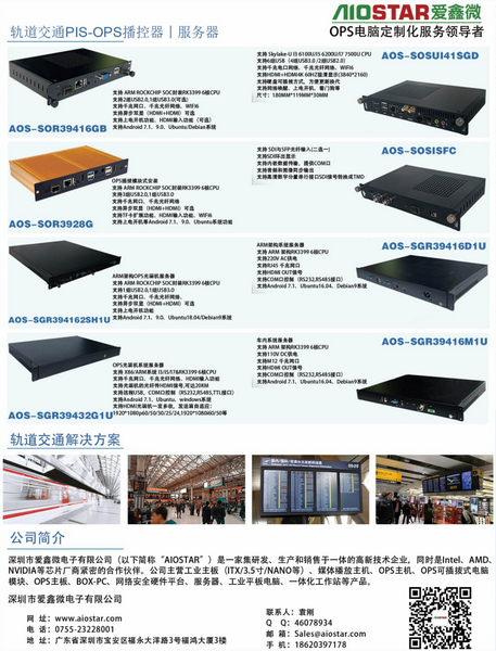 愛鑫微電子作為國內(nèi)OPS電腦產(chǎn)品線最全的研發(fā)、生產(chǎn)、銷售為一體的廠家,同時提供OEM/ODM定制服務(wù),目前主要軌道交通產(chǎn)品線為: