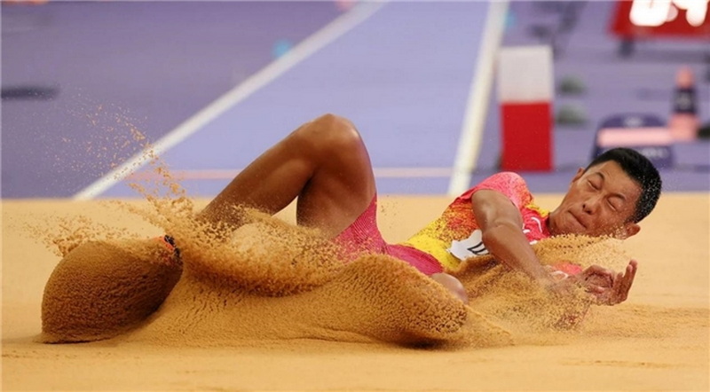 8月6日,中國(guó)選手王嘉男在比賽中。當(dāng)日,巴黎奧運(yùn)會(huì)田徑男子跳遠(yuǎn)決賽在法蘭西體育場(chǎng)舉行。新華社記者 李明 攝