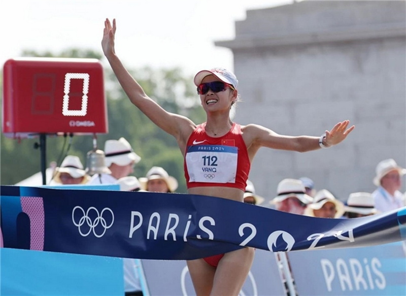 8月1日,楊家玉向終點(diǎn)沖刺。當(dāng)日,在巴黎奧運(yùn)會(huì)女子20公里競(jìng)走比賽中,中國(guó)選手楊家玉奪得冠軍。新華社記者 李鋼 攝(裁切前)