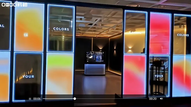 創(chuàng)新展示形式與提升參與感:在展覽和會議場合,OBOO鷗柏OLED透明屏的引入為展示形式帶來了革命性的變化。它可以將虛擬內(nèi)容與現(xiàn)實(shí)場景相結(jié)合,創(chuàng)造出沉浸式、交互式的展示體驗(yàn),使觀眾能夠更直觀地了解展品或議題內(nèi)容。同時,其高清晰度和色彩飽和度也確保了展示效果的出色表現(xiàn)。